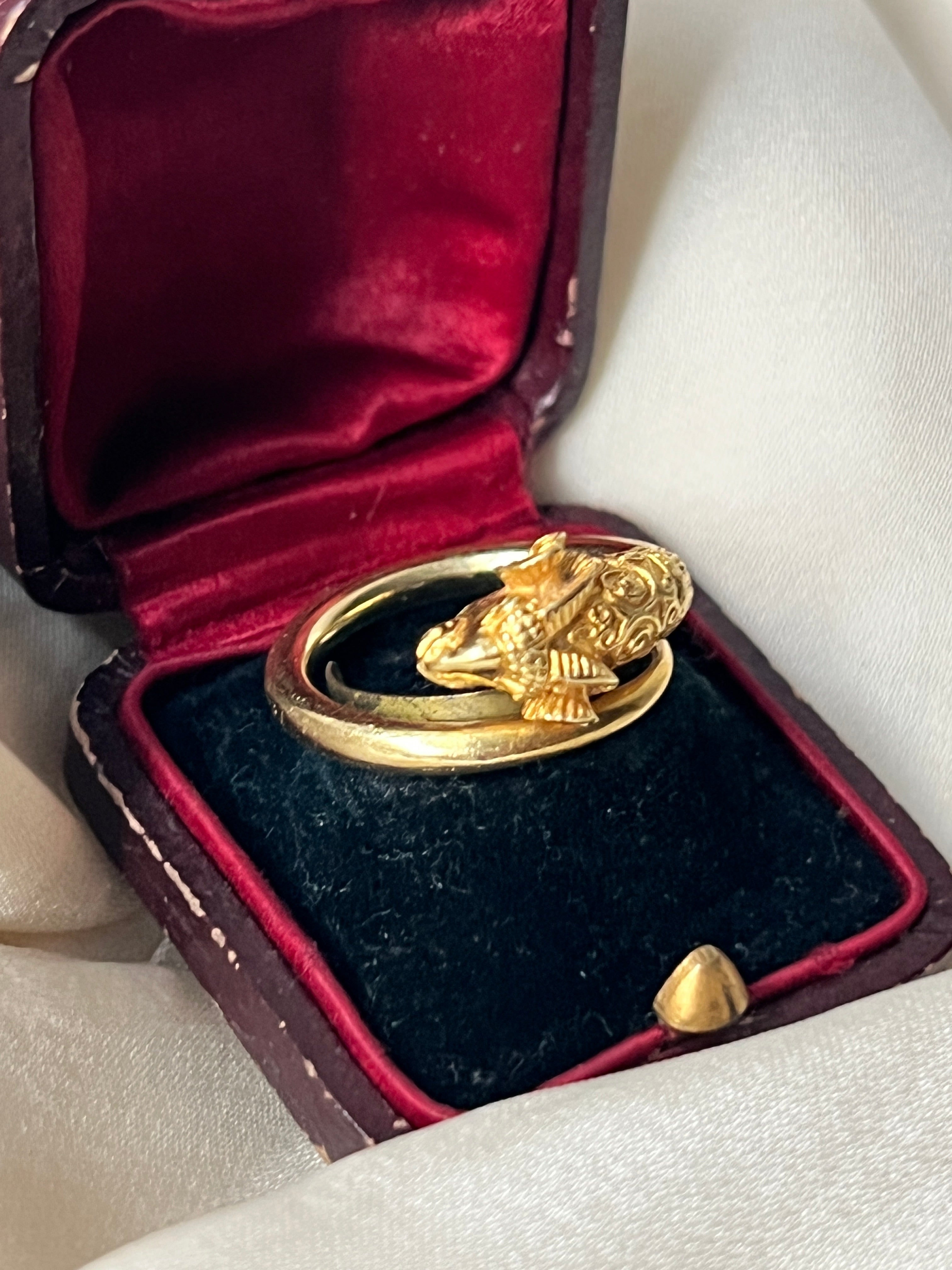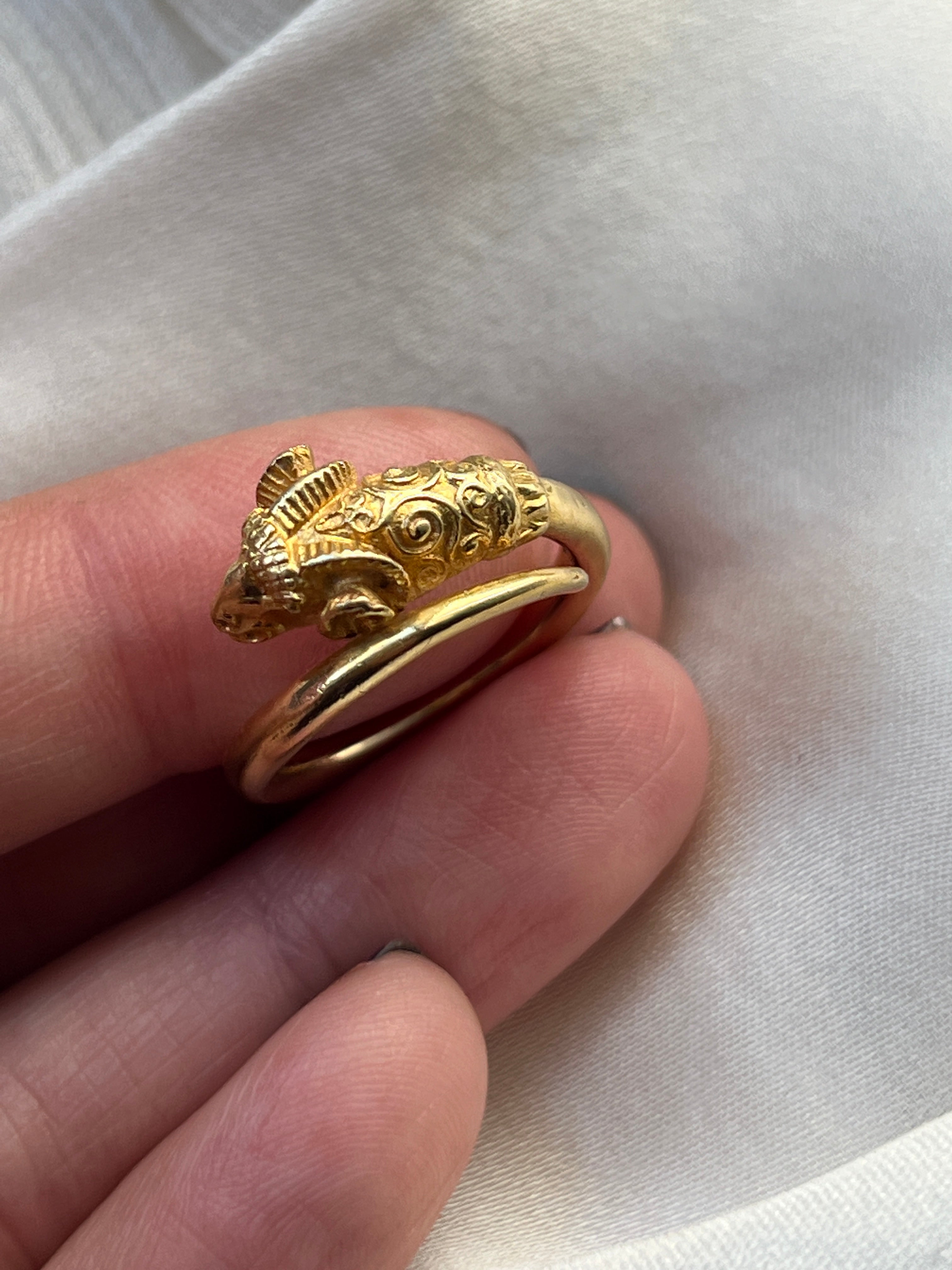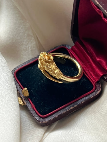 Antique 18k gold ram head ring