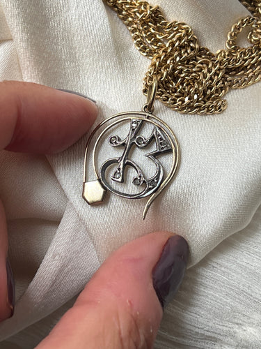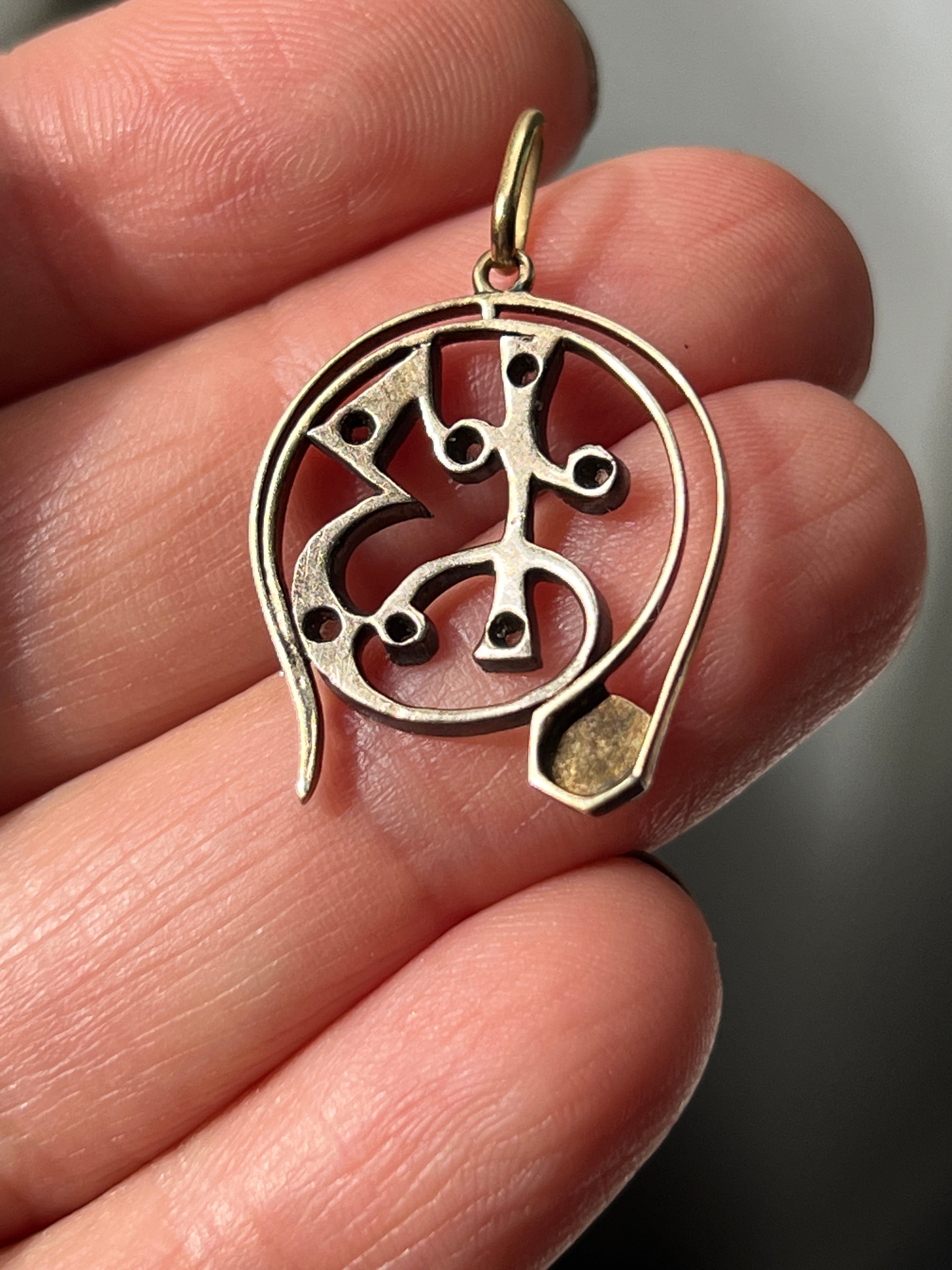 Antique Italian 18k gold and old cut diamond 13 lucky pendant