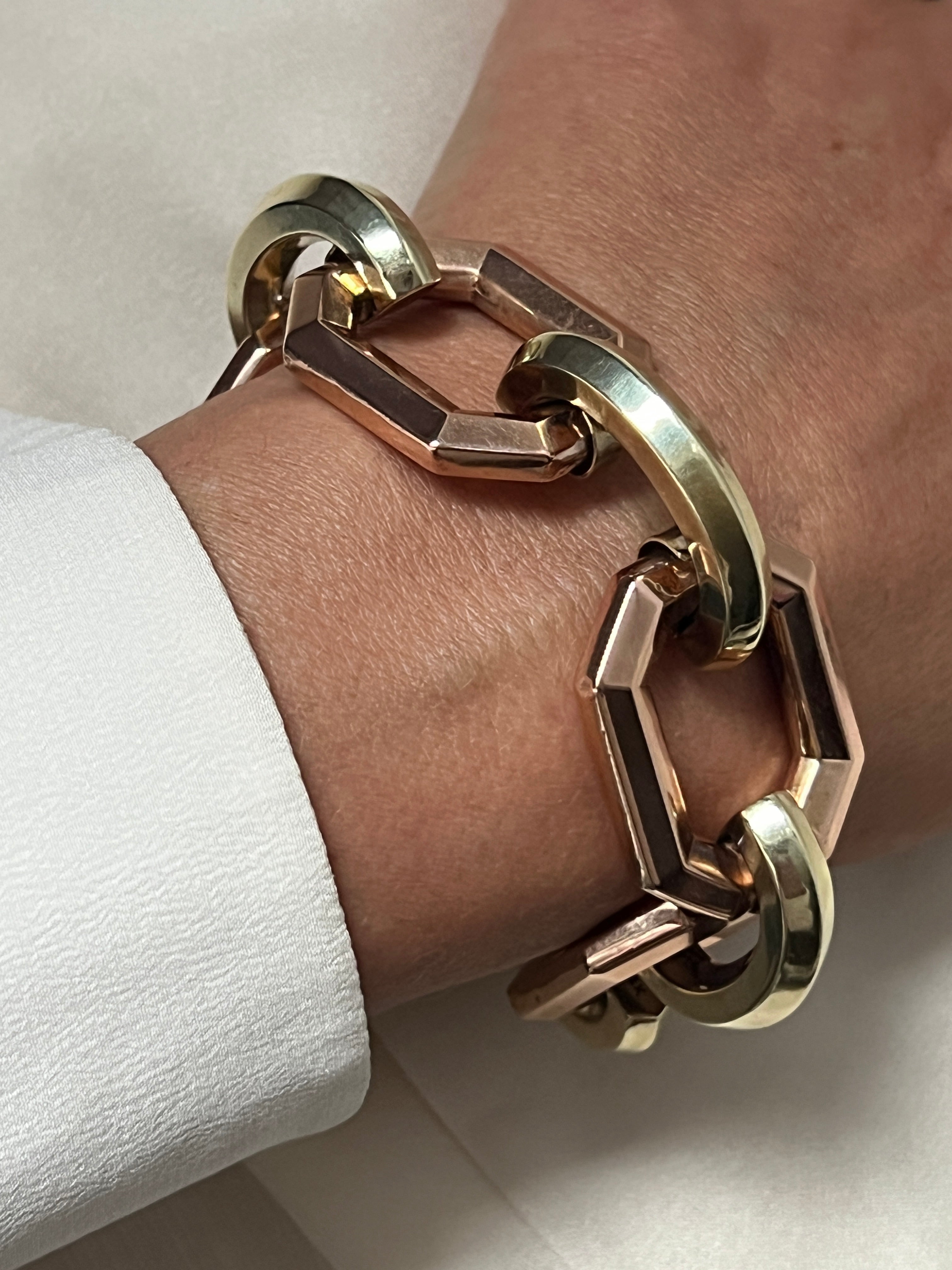 Art Deco 14k gold two tone geometric link bracelet
