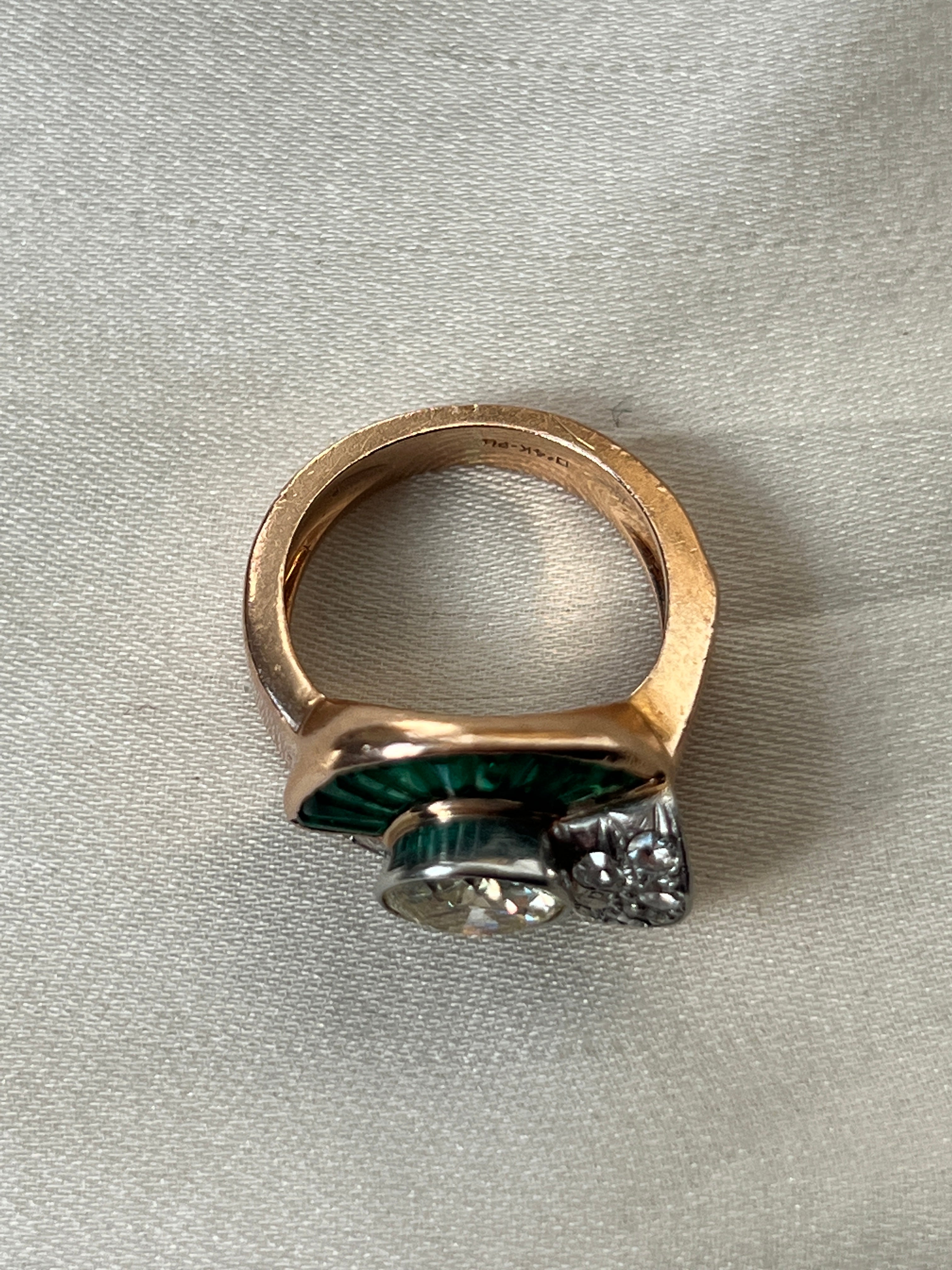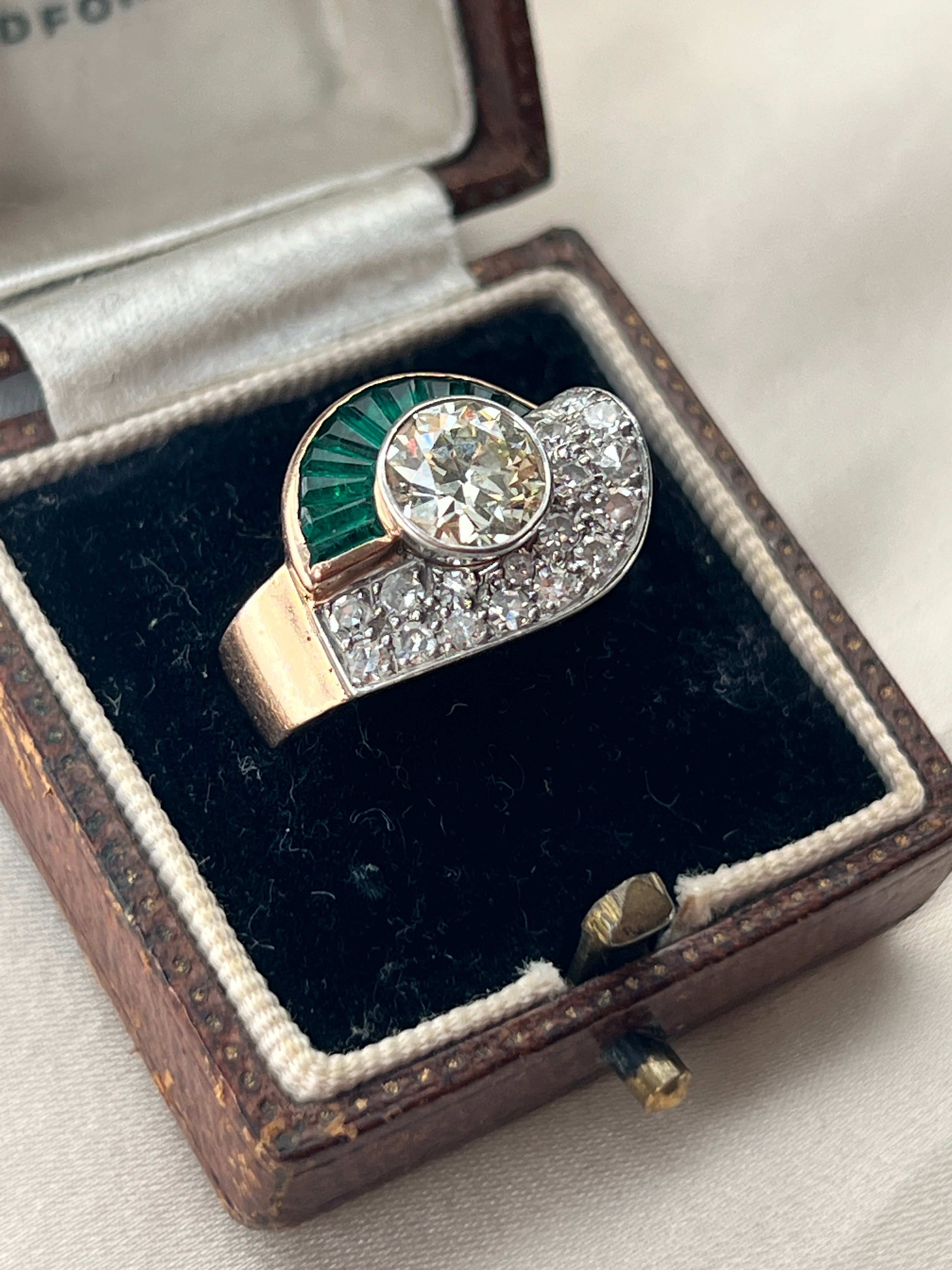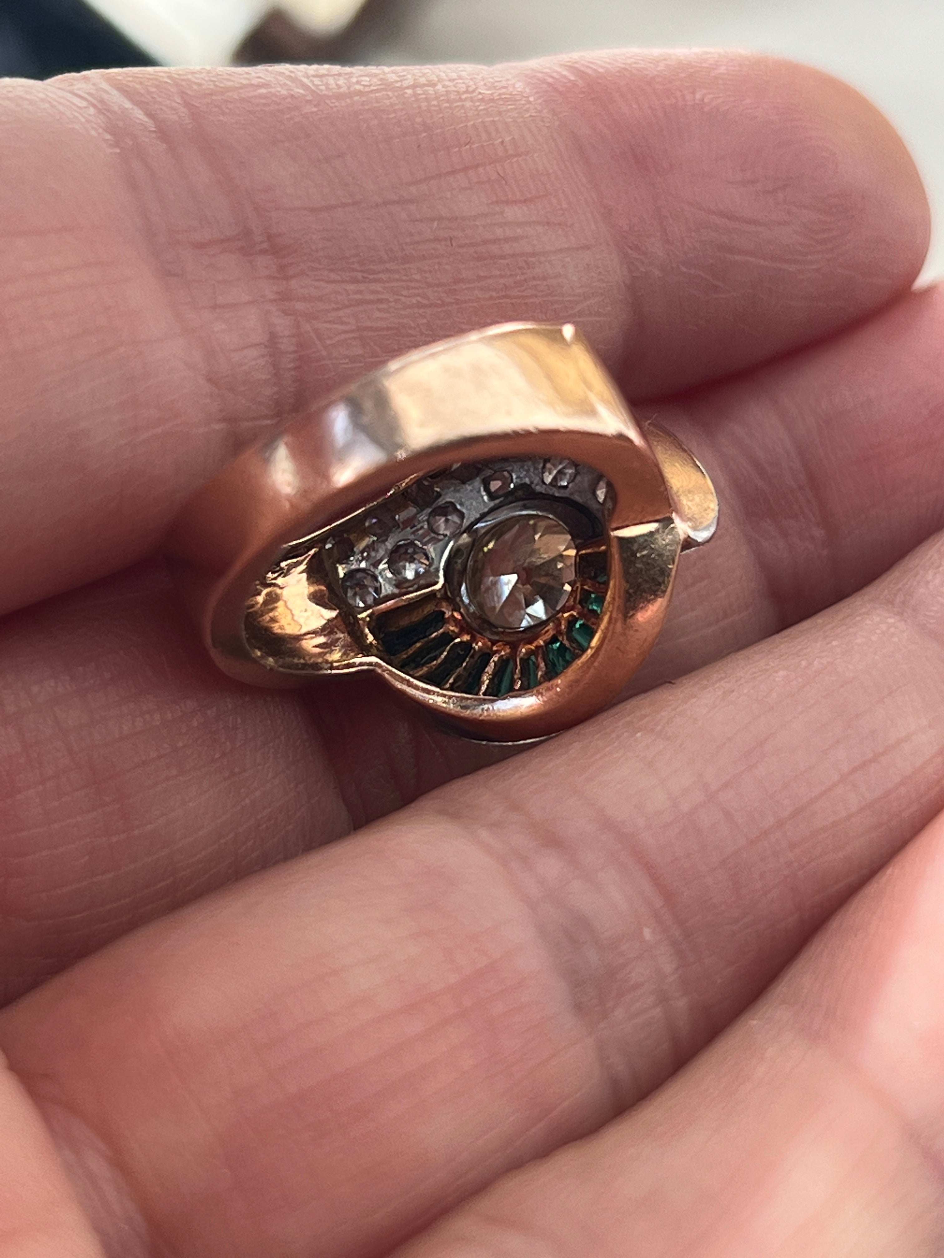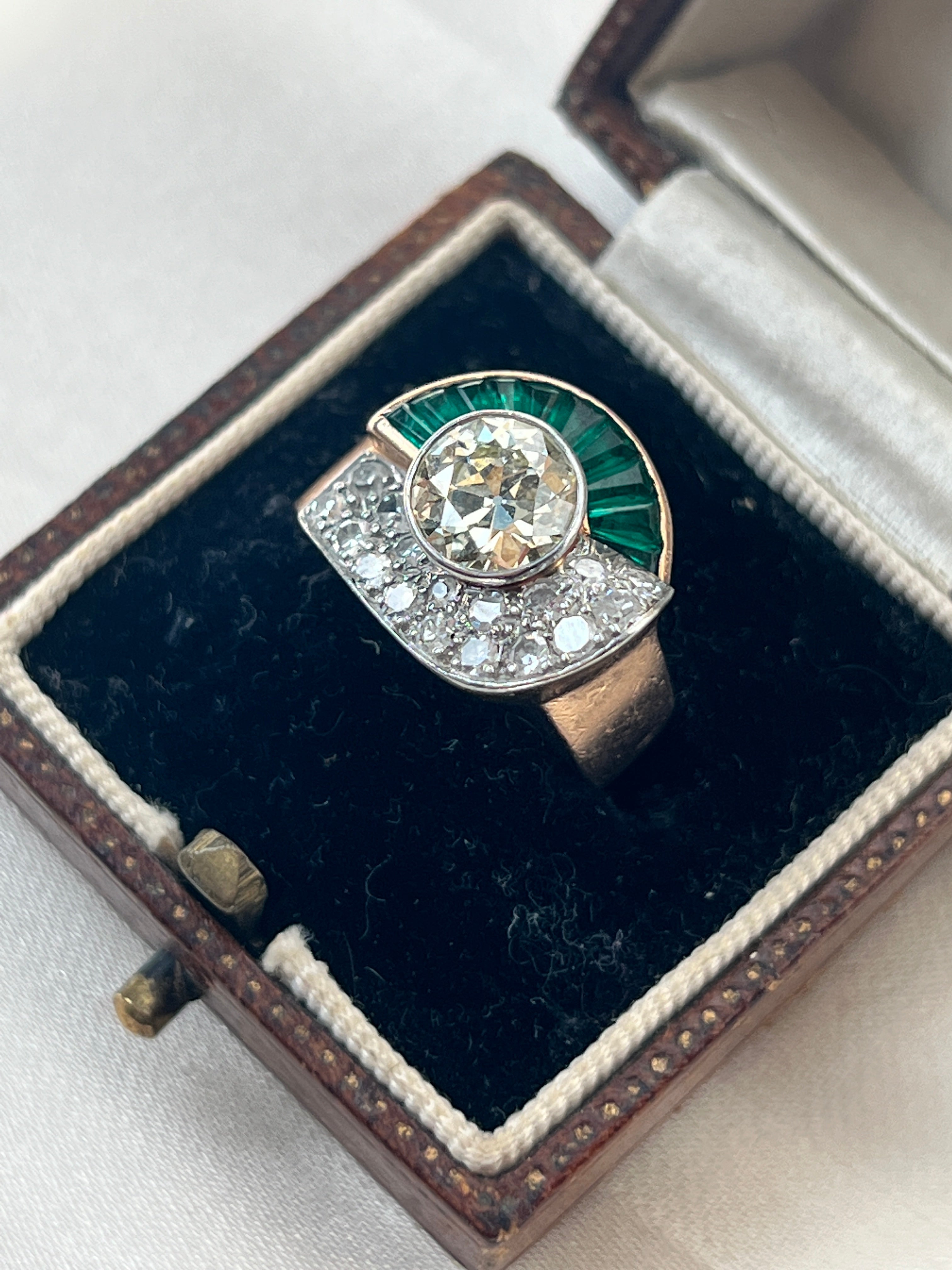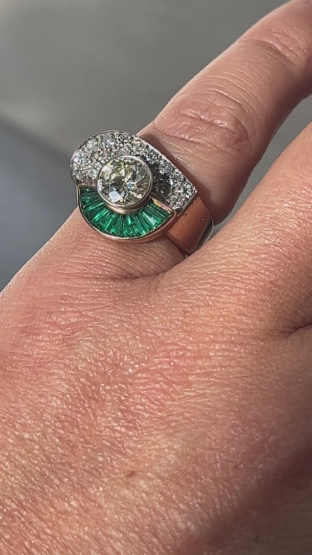 Art Deco 18k gold emerald & diamond ring
