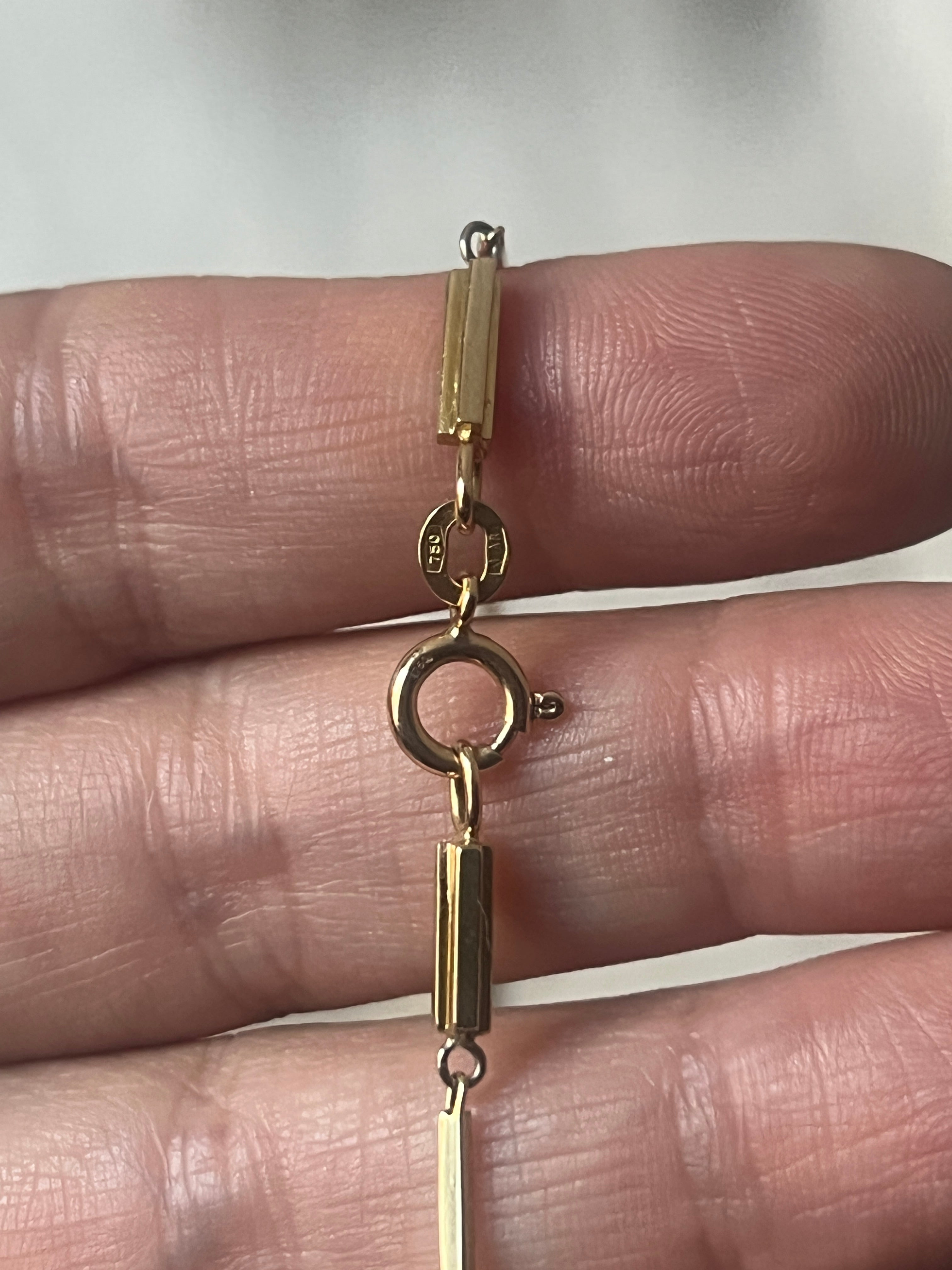 Vintage Italian 18k gold chain with bar links. The chain is hallmarked 750 with the Italian maker's mark.