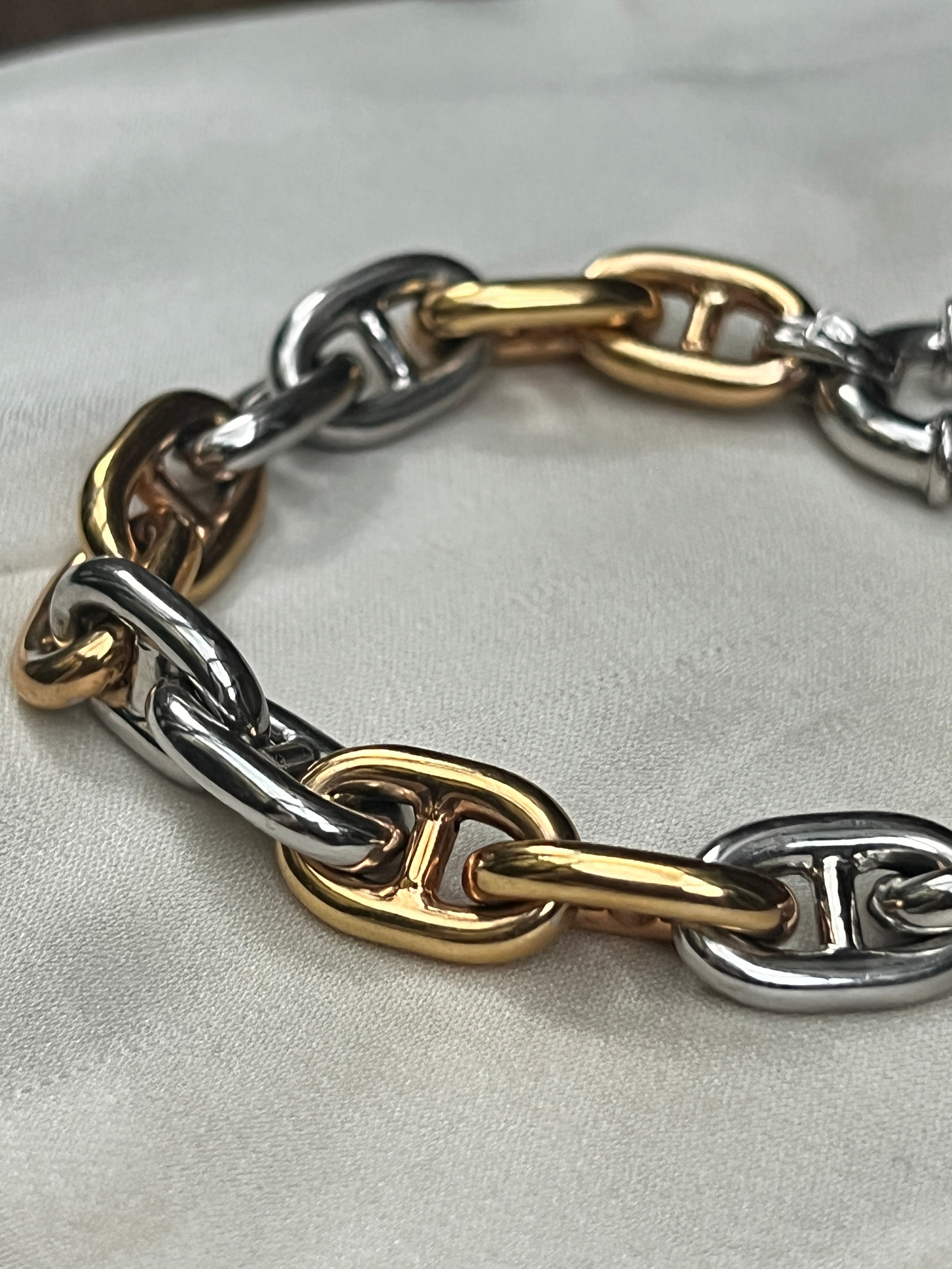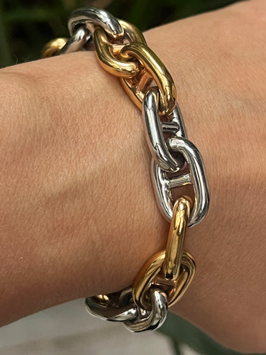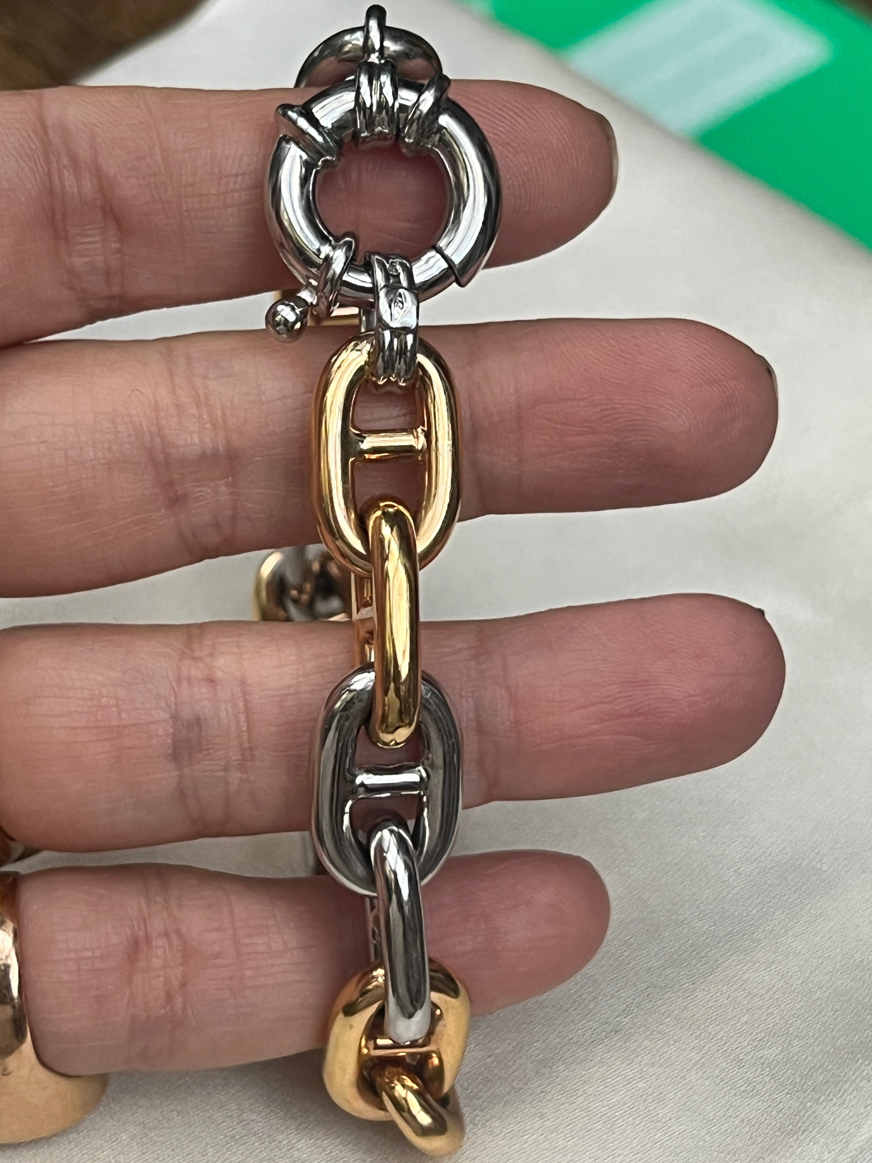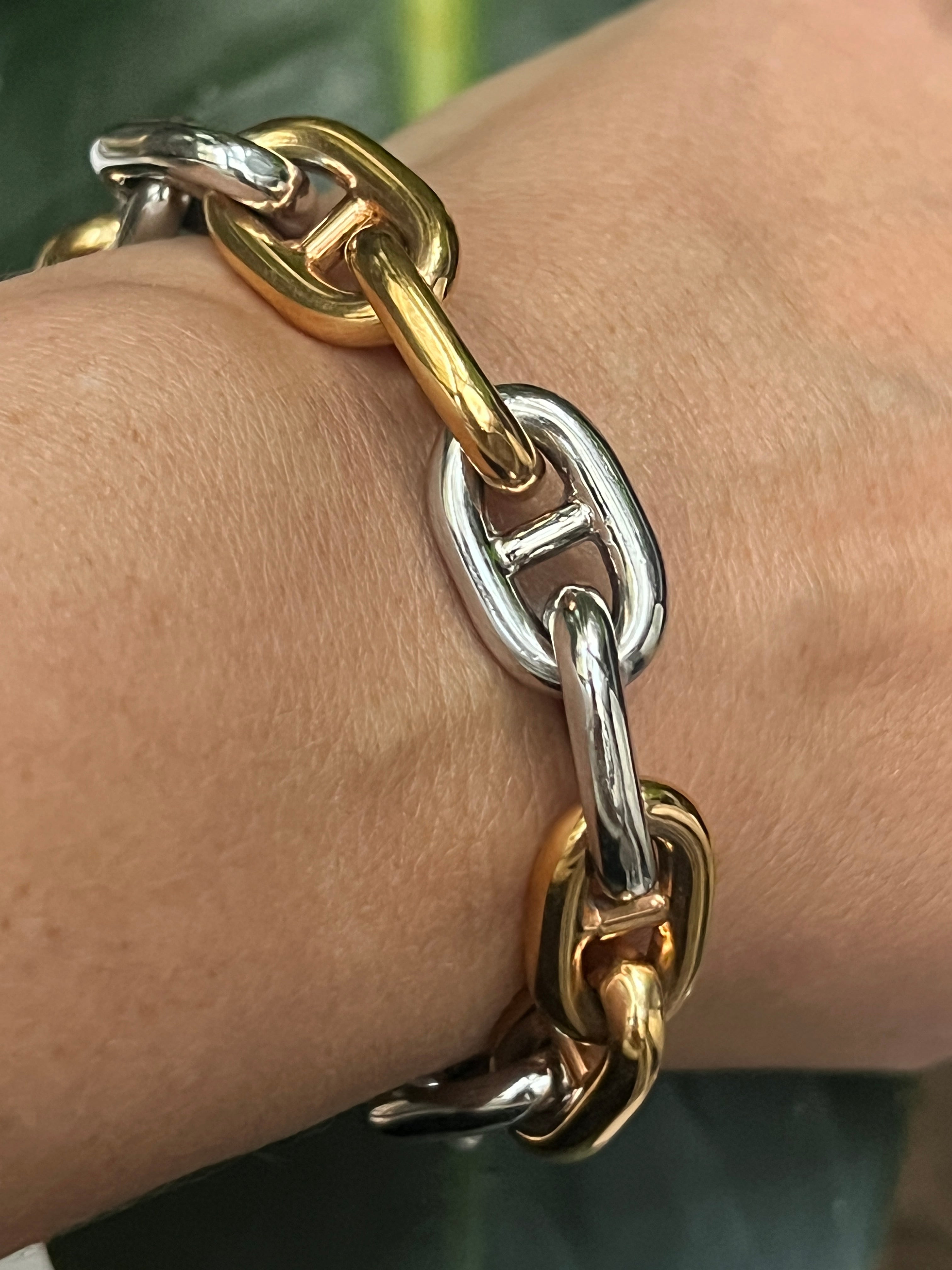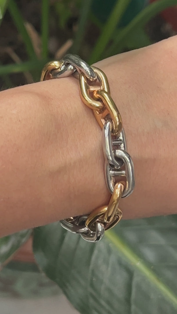 Vintage Italian 18k two tone gold chunky mariner link bracelet