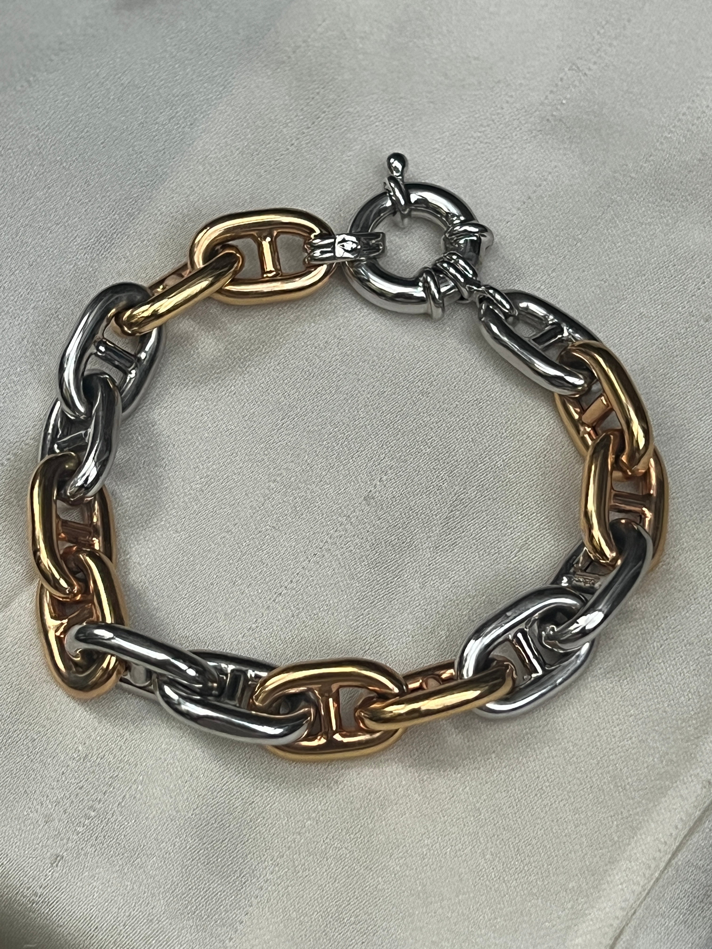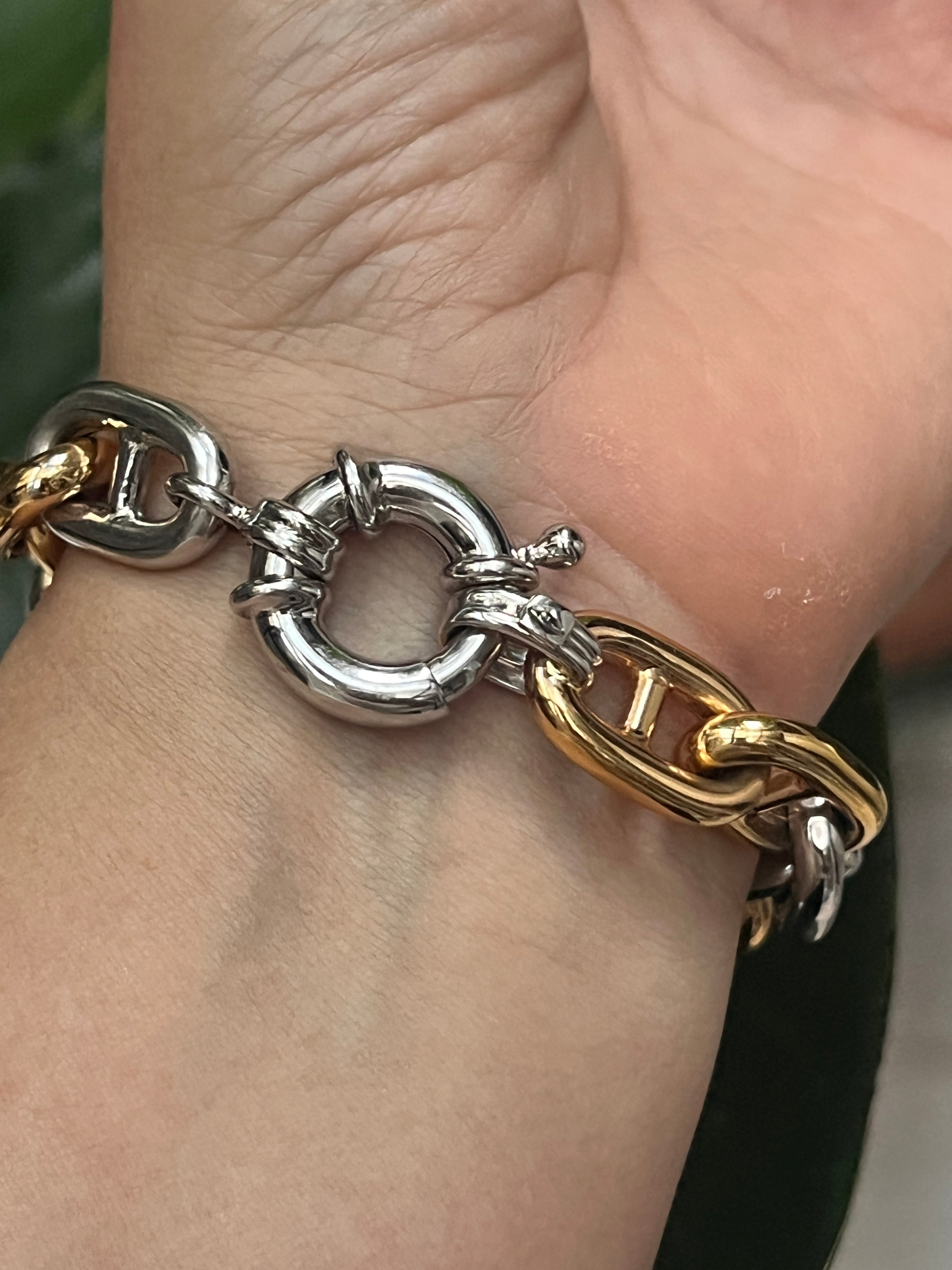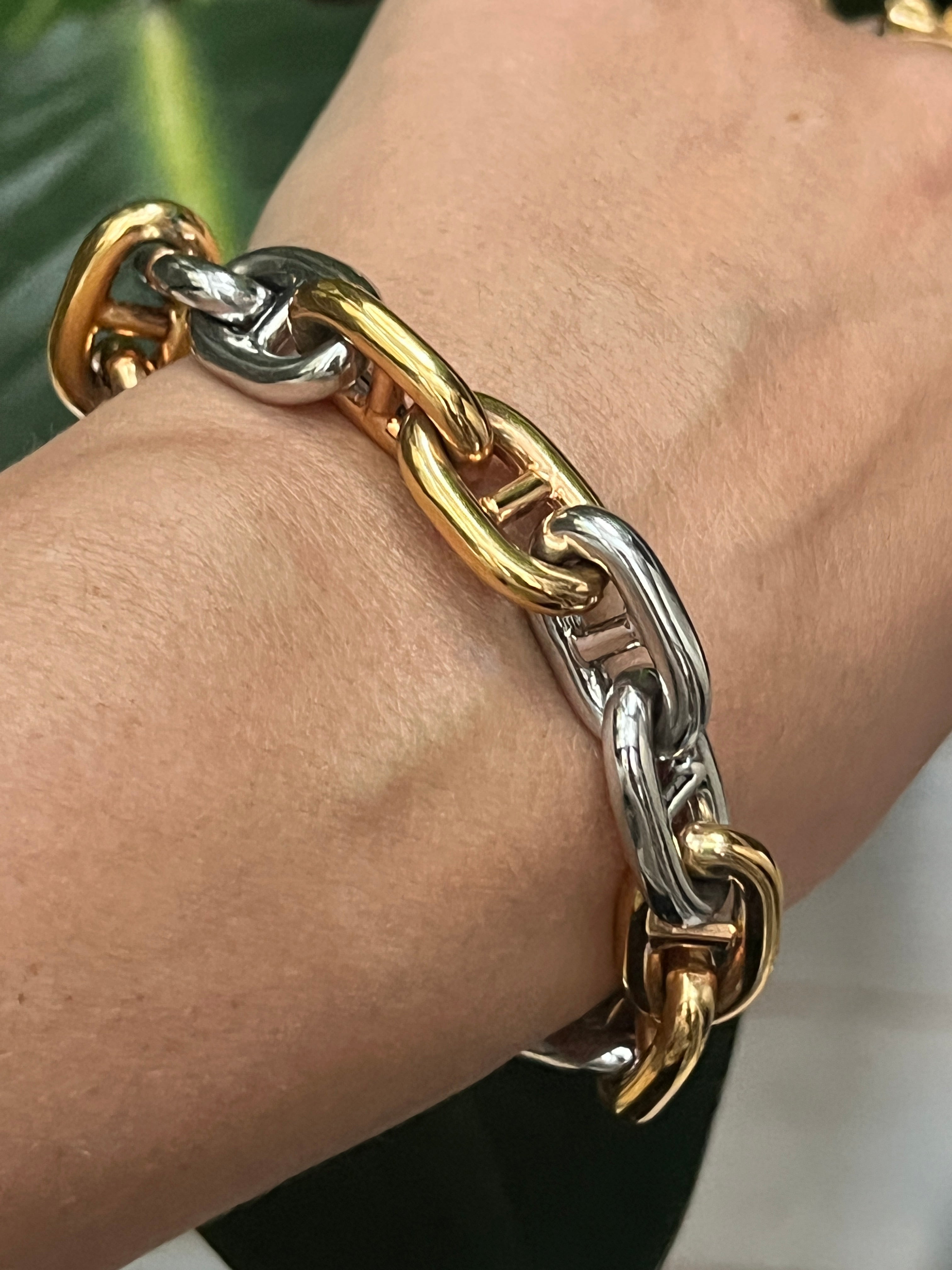 Vintage Italian 18k two tone gold chunky mariner link bracelet